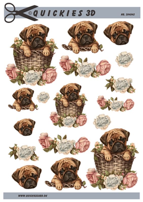 Hund i kurv med roser Quickies 3d, 10 ark