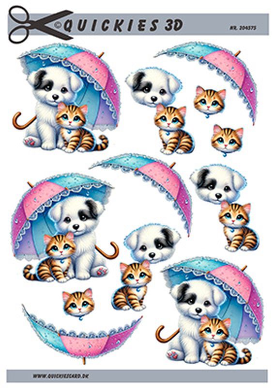 Hundehvalp og killing under paraply Quickies 3D, 10 ark