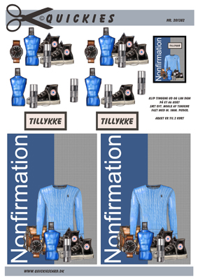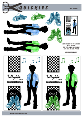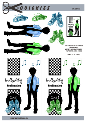 Konfirmation dreng, jakke, sko og mobil, Quickies card, 10 ark