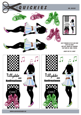 Konfirmation pige, jakke, sko og mobil, Quickies card, 10 ark