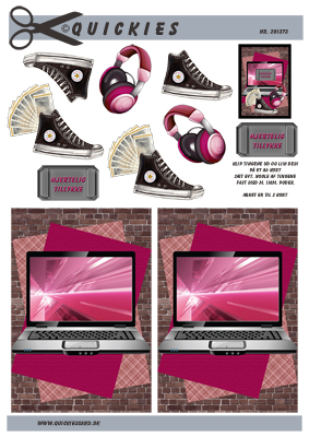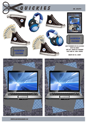 Pc, converse, penge og høretelefoner til dreng, Quickies card, 10 ark